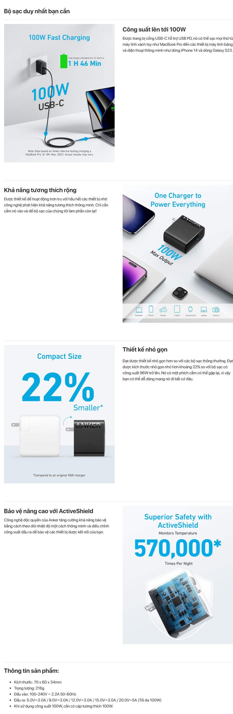 | Công suất sạc | 100W |