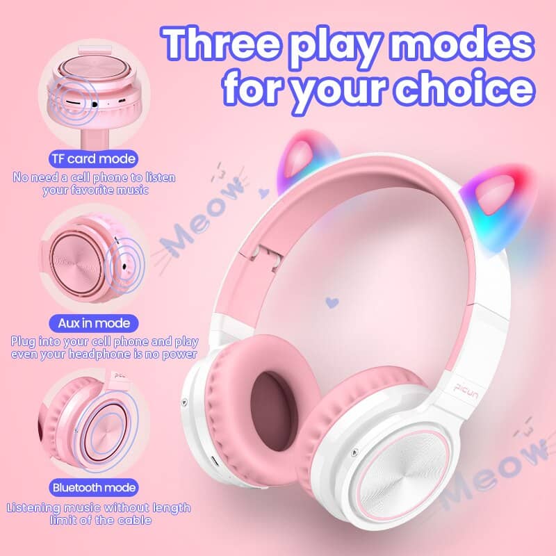 Tai nghe bluetooth tai mèo được thiết kế bao gồm một cặp loa phát âm thanh được nhỏ gọn, tiện lợi, và thường được đặt áp sát bên tai để nghe âm thanh, tai nghe có hình tai mèo cực kỳ đáng yêu.