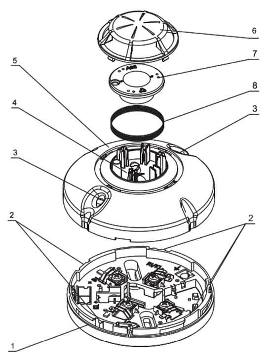Các đầu báo cháy nhiệt (hình 1) bao gồm 1 bảng mạch và 1 buồng chứa điện trở (hình 4), cố định trên thân nhựa.
