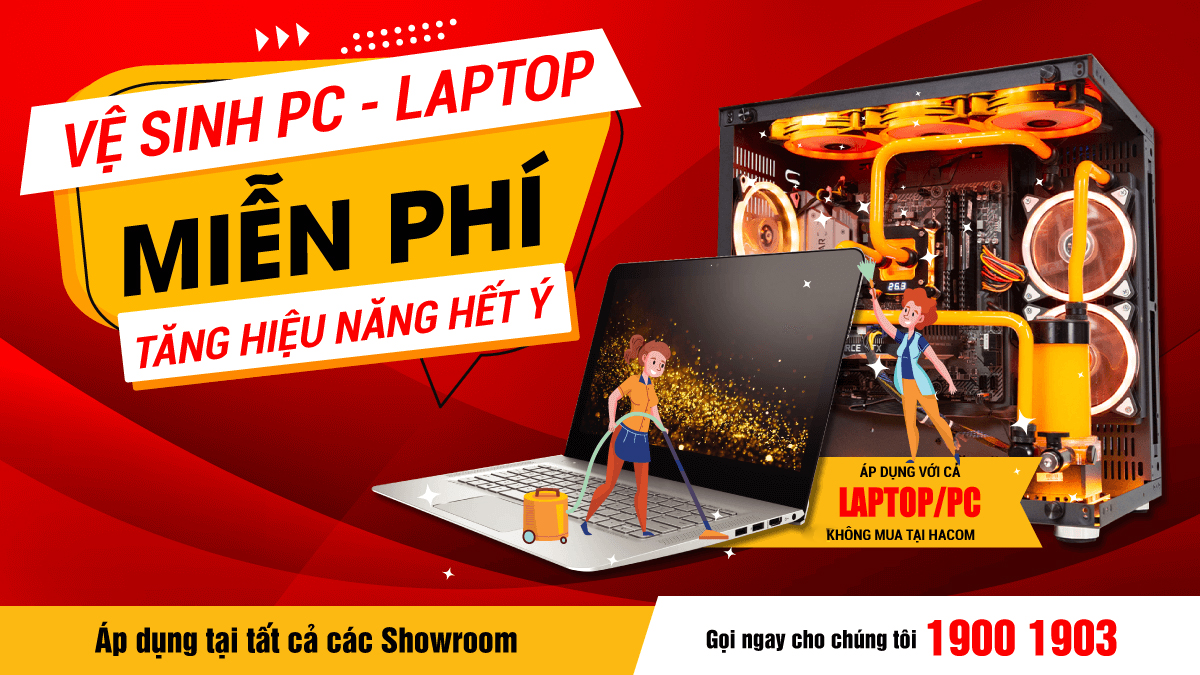 Nhằm nâng cao chất lượng dịch vụ và đáp ứng nhu cầu của khách hàng, HACOM chính thức triển khai dịch vụ vệ sinh Laptop, vệ sinh PC miễn phí. Chương trình cụ thể như sau: