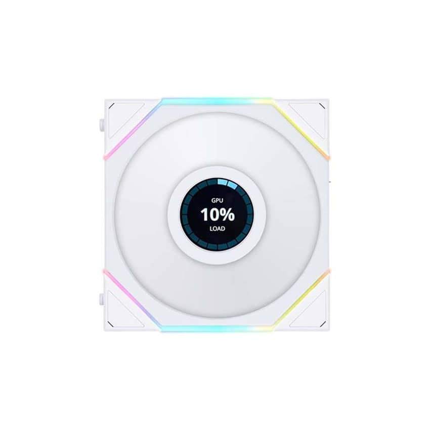 Quạt Lian Li 12RTLLCD3W với đèn LED tùy chỉnh lên đến 26 đèn, với các hiệu ứng ánh sáng khác nhau ở bên cạnh khung bọc, tạo ra hiệu ứng ánh sáng nhiều lớp độc đáo.
