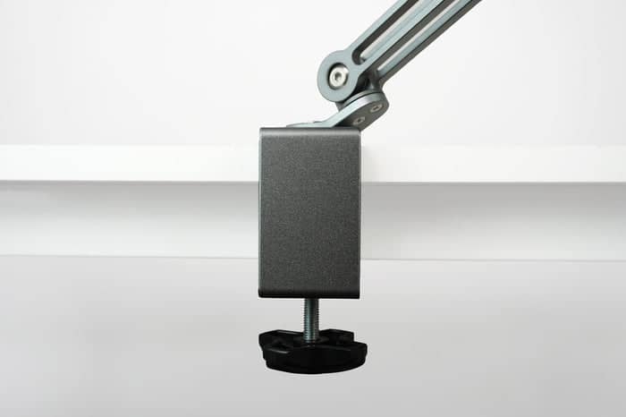 Thiết kế lắp đặt dạng kẹp bàn giúp cố định giá đỡ chắc chắc và ổn định hơn khi thao tác trên thiết bị.