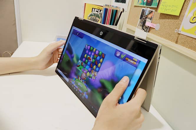 Một điều nữa khiến Pavilion x360 14 được nhiều sinh viên lựa chọn đó là khả năng viết, vẽ ngay trên màn hình. Thật tiện lợi khi giờ đây chỉ cần mang theo một chiếc laptop để ghi chép mọi môn học thay vì cả một balo đầy sách vở. Phiên bản x360 2020 đi kèm bút cảm ứng với 4096 mức độ tạo cảm giác viết chân thực tương tự như trên giấy thật. Đặc biệt, thế hệ bút này còn có khả năng hỗ trợ viết nghiêng, giúp các nét bút trở nên chi tiết và chính xác hơn nhiều, rất hữu ích cho những bạn trẻ ưa thích vẽ vời. Pavilion x360 14 2020 là sự kết hợp hài hòa giữa bảng vẽ điện tử, máy tính bảng và laptop truyền thống, tất cả chỉ gói gọn trong một thiết bị duy nhất.