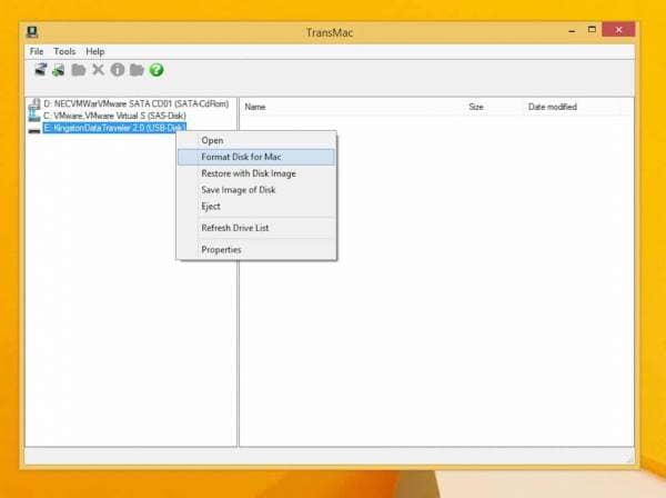 Sau khi tải và cài đặt Transmac, bạn cắm USB vào máy, mở TransMac, chờ 15 giây, chuột phải vào USB và chọn Format Disk for Mac.