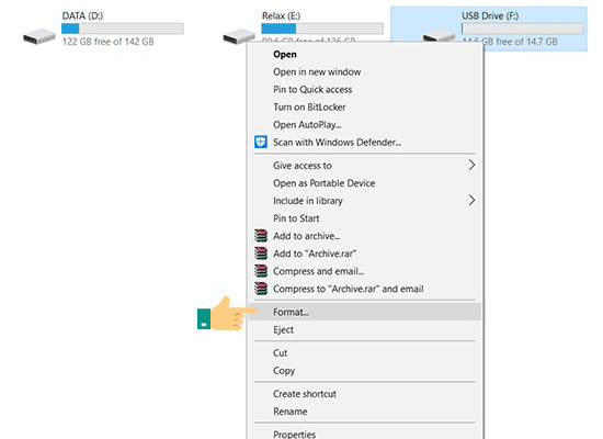 Đầu tiên chúng ta cần phải Format chiếc USB định dùng để cài win mới. Việc làm này sẽ giúp chiếc USB boot win 10 đảm bảo rằng không chứa virus, mã độc còn tồn tại ở những file cũ. Bên cạnh đó, các dữ liệu hệ thống được đảm bảo tính toàn vẹn và quá trình cài đặt cũng nhanh hơn.