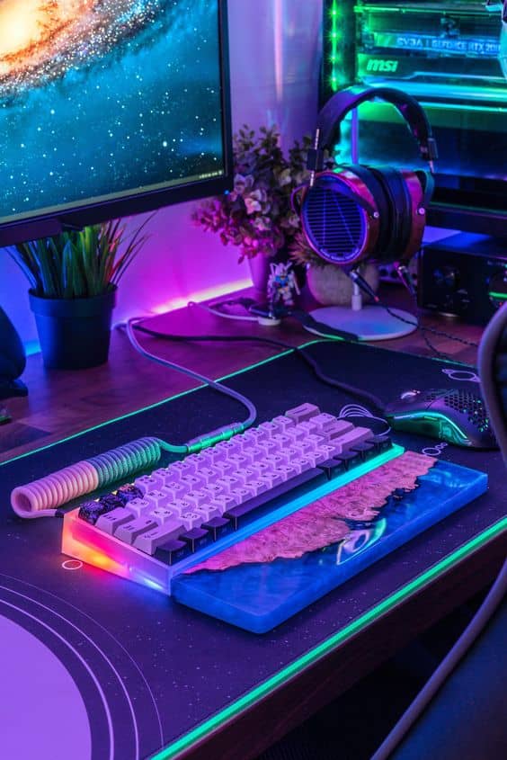 Bàn phím đặt ở giữa bàn, cũng là nơi mà chúng ta có thể làm nhiều việc như, từ ăn, uống, họp online và chơi game. Tuy nhiên, điều này khiến góc chơi gaming của bạn bị bẩn. Đặc biệt hơn với thời gian sử dụng kéo dài, bàn phím thường bị bẩn khá nhanh và cần được làm sạch thường xuyên.