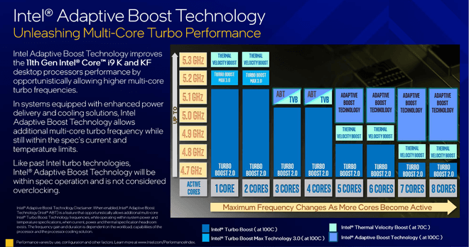 Chỉ có một đáng tiếc duy nhất là hãng hạ số lượng nhân trên vi xử lý mạnh nhất của mình xuống so với Core i9-10900K, từ 10 nhân, 20 luồng thành 8 nhân, 16 luồng. Điều này đem lại hiệu năng đa nhân thấp hơn so với đàn anh. Tuy nhiên, hiệu năng đơn nhân của Intel Core i9-11900K được cải thiện rõ rệt, và tiếp tục giữ ngôi vương trong khả năng chiến game của mình.