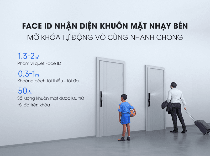 Điểm đặc biệt của Khóa cửa thông minh Kitos ALS5 Face ID chính là công nghệ nhận diện khuôn mặt (Face ID) thế hệ mới. Với tốc độ nhận diện cực nhanh và độ chính xác cao, chỉ cần một cái nhìn là bạn đã có thể mở khóa ngay lập tức. Không còn lo lắng về việc quên chìa khóa hay nhập sai mật mã, bạn có thể tận hưởng sự tiện nghi khi ra vào nhà mà không cần phải mang theo bất kỳ vật dụng nào.