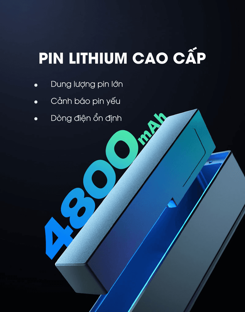 Khóa cửa thông minh Kitos ALS5 Face ID được trang bị pin sạc lithium dung lượng 4800 mAh, mang lại khả năng hoạt động lâu dài mà không cần lo lắng về việc thay pin thường xuyên. Pin có thể sử dụng trong nhiều tháng chỉ với một lần sạc đầy, và bạn cũng có thể dễ dàng theo dõi mức pin thông qua ứng dụng di động để đảm bảo khóa luôn sẵn sàng hoạt động.