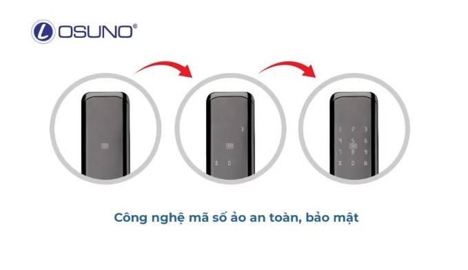 Khóa cửa được thiết lập công nghệ mật khẩu ảo. Trước khi nhập mật khẩu, người dùng có thể nhấn hai chữ số được chọn ngẫu nhiên. Điều này giúp kẻ xấu không thể đoán được mật mã qua các dấu vân tay trên bề mặt khóa. Nâng cấp và đảm bảo sự an toàn cho ngôi nhà của bạn.