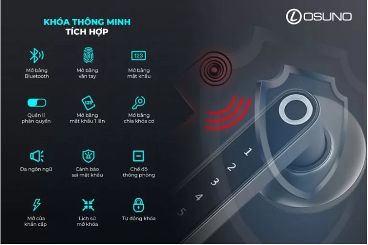 Phù hợp để lắp cho cửa thông phòng, tuy nhiên mẫu khóa này lại tích hợp đầy đủ các phương thức mở khóa hiện tại hiện nay như: mở khóa bằng vân tay, mã số, chìa khóa cơ, app. Không chỉ vậy khóa còn tích hợp nhiều tính năng khác như: quản lí khóa thông qua app trên điện thoại, cảnh báo nhập sai vân tay nhiều lần, xem lại lịch sử mở khóa.
