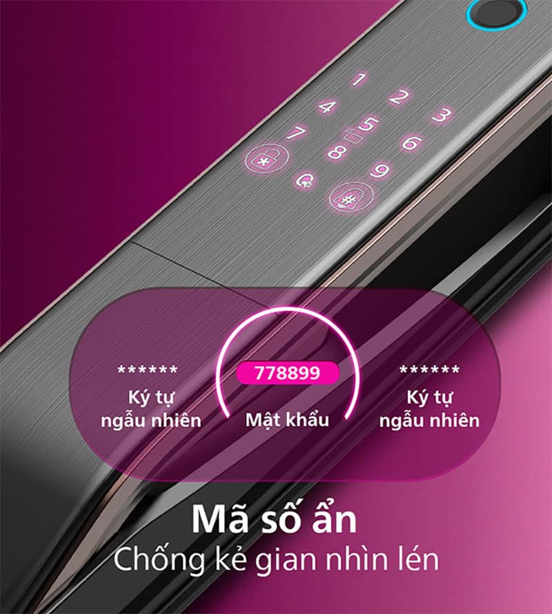 Tính năng mã số ảo được sử dụng khi xung quanh bạn có nhiều người lạ. Lúc này, bạn hãy nhập mã số bất kỳ trước và sau mã số mở cửa để ngăn chặn kẻ gian biết được mật khẩu nhà mình. Có thể nhập tùy ý dãy mã số để ngăn chặn kẻ gian ghi nhớ, nhìn lén mã số.