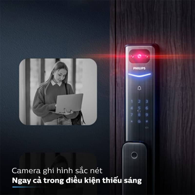 Màn hình quan sát Full HD IPS 4 inch giúp theo dõi mọi hình ảnh rõ nét, dù là ngày hay đêm. Trên khóa Khóa thông minh Philips VP- 5HWS được tích hợp camera góc rộng 144° và hai đèn chiếu sáng hồng ngoại tự động bật sáng trong điều kiện ánh sáng mờ. Trong phạm vi 1m, mọi hành động trước cửa nhà bạn đều có thể quan sát được.