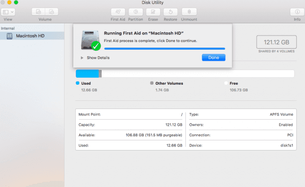 7. Sau khi ổ đĩa của bạn được fix thành công, hãy thoát khỏi Disk Utility.