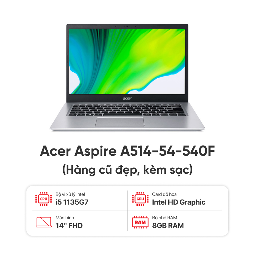 Laptop Acer Aspire A514-54-540F (i5 1135G7/8GB/512GB SSD/14.0 inch FHD/Win10/Bạc/Kèm sạc) - Hàng cũ, xước nhẹ