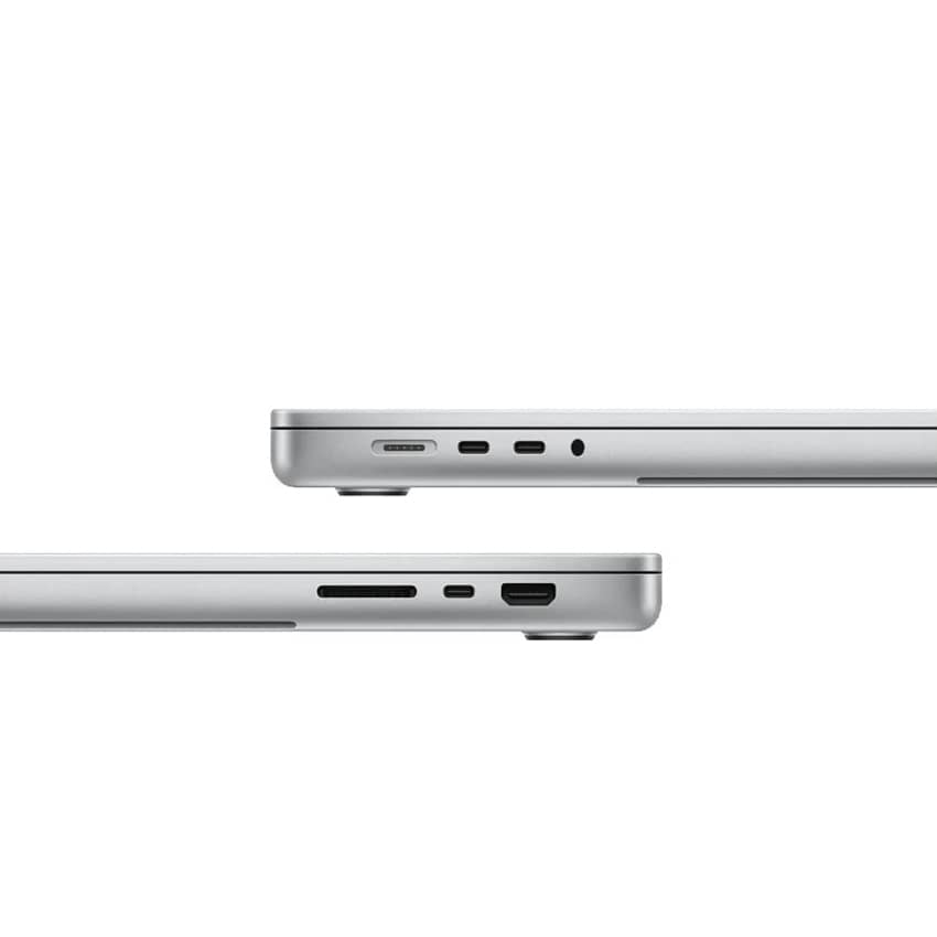 MacBook Pro cung cấp ba cổng Thunderbolt 5 với băng thông lên tới 120Gb/s, một cổng HDMI hỗ trợ xuất hình ảnh độ phân giải lên đến 8K (60Hz) hoặc 4K (120Hz), khe cắm thẻ SDXC và jack tai nghe 3,5 mm. Các tùy chọn kết nối này đáp ứng hầu hết nhu cầu của người dùng chuyên nghiệp.
