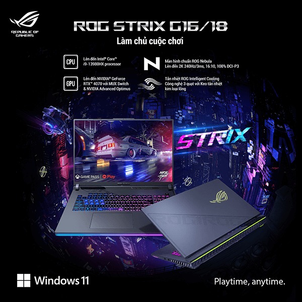 - Màn hình: Display 18inch QHD+ 2.5K, IPS, 240Hz, 100% DCI-P3, G-sync, ROG Nebula Display