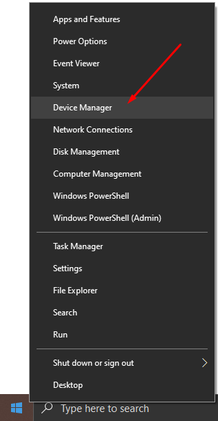 Bước 1 : Click chuột phải vào biểu tượng Window ở góc trái màn hình và chọn Device Manager