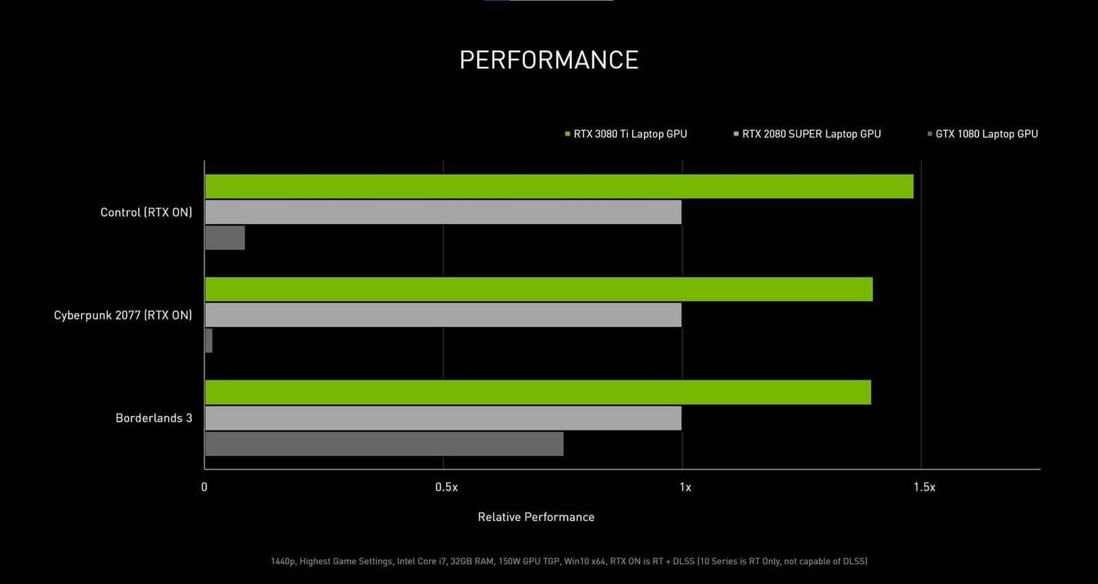 Laptop sử dụng RTX 3080Ti sẽ sở hữu 16GB RAM GDDR6, với hiệu năng cao hơn RTX Titan phiên bản dành cho máy tính bàn. Những sản phẩm này sẽ có mức giá khởi điểm từ 2499 USD (khoảng 60 triệu đồng) ở thị trường quốc tế.
