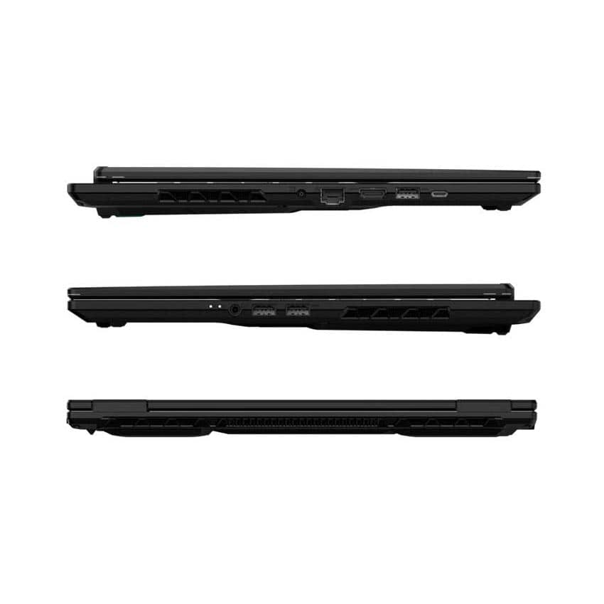 Máy hỗ trợ đầy đủ các cổng kết nối hiện đại: USB-C, USB-A 3.2, HDMI 2.1, LAN RJ45, jack tai nghe 3.5mm, đảm bảo khả năng kết nối đa dạng với các thiết bị ngoại vi và màn hình ngoài. Bàn phím single color backlit màu xanh lá, hành trình phím 1.7mm, cho cảm giác gõ êm ái, chính xác. Hệ thống loa 2x2W tích hợp Dolby Atmos mang đến trải nghiệm âm thanh sống động, chuẩn điện ảnh cho cả game lẫn giải trí.