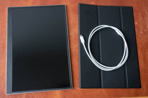 Đúng bản chất phục vụ cho thói quen thường xuyên di chuyển. Phụ kiện chính bao gồm màn hình, cable USB-C dài 1,5m và tấm cover màn hình.
