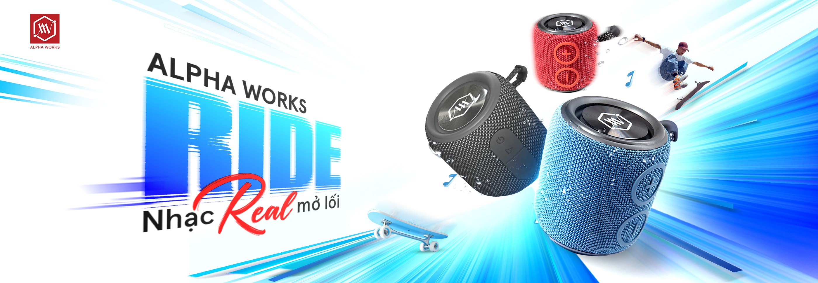 Thưởng thức chất "Real" trong từng bản nhạc với thế hệ loa Bluetooth kháng nước mới nhất - Alpha Works RIDE. Thiết kế nhỏ gọn, chuẩn kháng nước IPX7, ghép nối TWS Stereo, thời lượng pin lên đến 18H cùng những công nghệ âm thanh mới nhất, chiếc loa AW-RIDE luôn sẵn sàng để cùng bạn tạo nên những bản soundtrack giàu năng lượng, tận hưởng âm nhạc vô lo vô nghĩ và bền bỉ theo mọi hành trình khám phá.