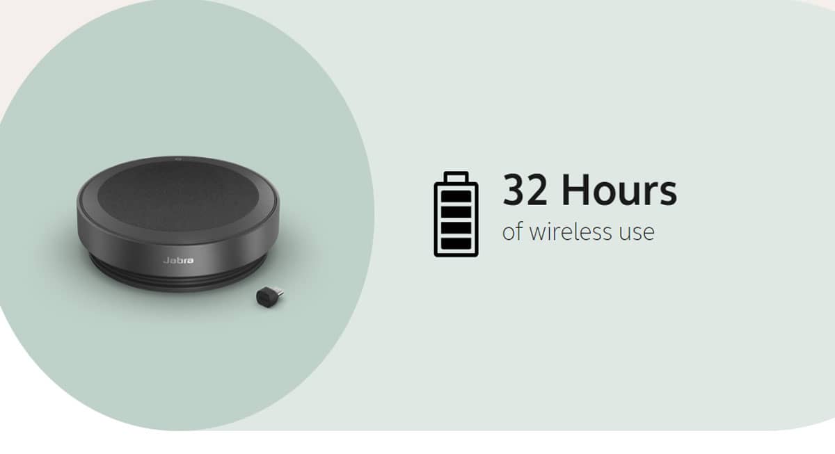 Với thời lượng pin lên tới 32 giờ, thiết bị truyền hình hội nghị này có thể hoạt động không dây ở phạm vi lên tới 30 mét và cộng tác liền mạch, đồng thời loa hoàn toàn tương thích với các nền tảng liên lạc hợp nhất như Zoom hoặc Google Meet. Jabra Speak 2 75 UC có khả năng chống nước và bụi và được bảo hành 2 năm.