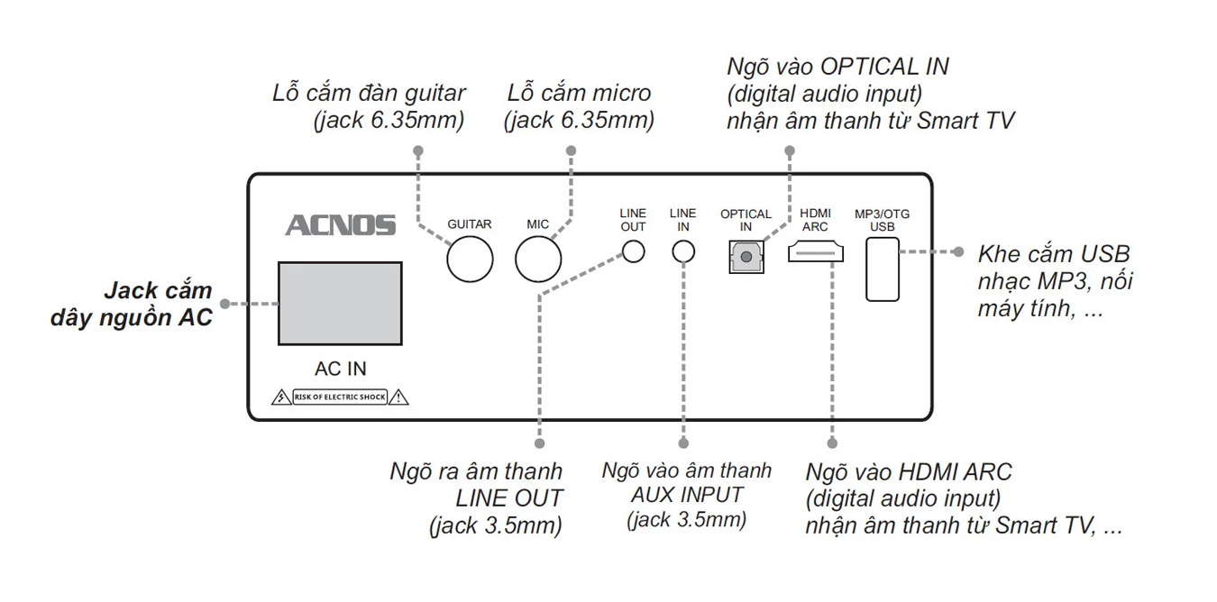 - - Điện áp sử dụng: 110~240VAC, 50/60Hz
