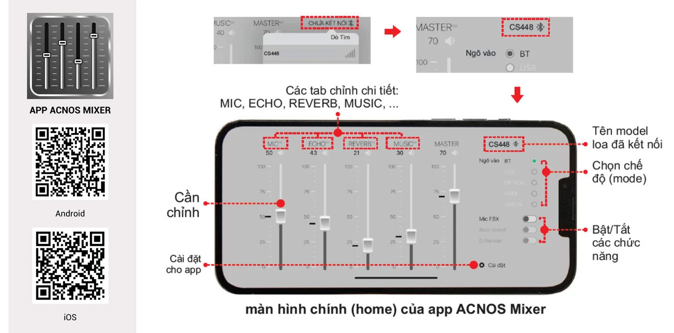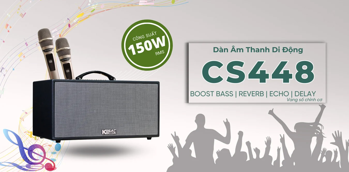 Loa Karaoke Xách Tay Mini Acnos CS448 100w (2 Bass 16.5cm, 150W, Bluetooth 5.0)