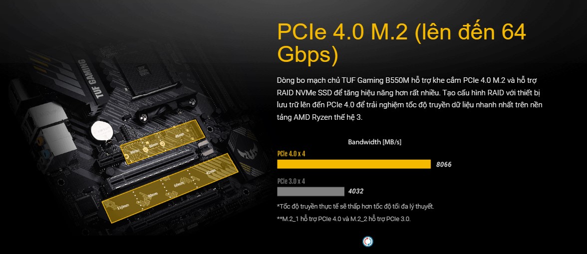 Mainboard ASUS TUF GAMING B550M-PLUS chắt lọc các yếu tố thiết yếu của nền tảng AMD mới nhất cùng độ bền đã được chứng minh của thương hiệu TUF. Được thiết kế với các linh kiện cao cấp đạt chuẩn quân sự, từ giải pháp cung cấp nguồn điện cho CPU được nâng cấp đến hệ thống heat sink hiệu quả hơn. Bo mạch chủ tầm trung này sẽ mang đến hiệu năng xuất sắc cùng độ ổn định trong mọi tác vụ.