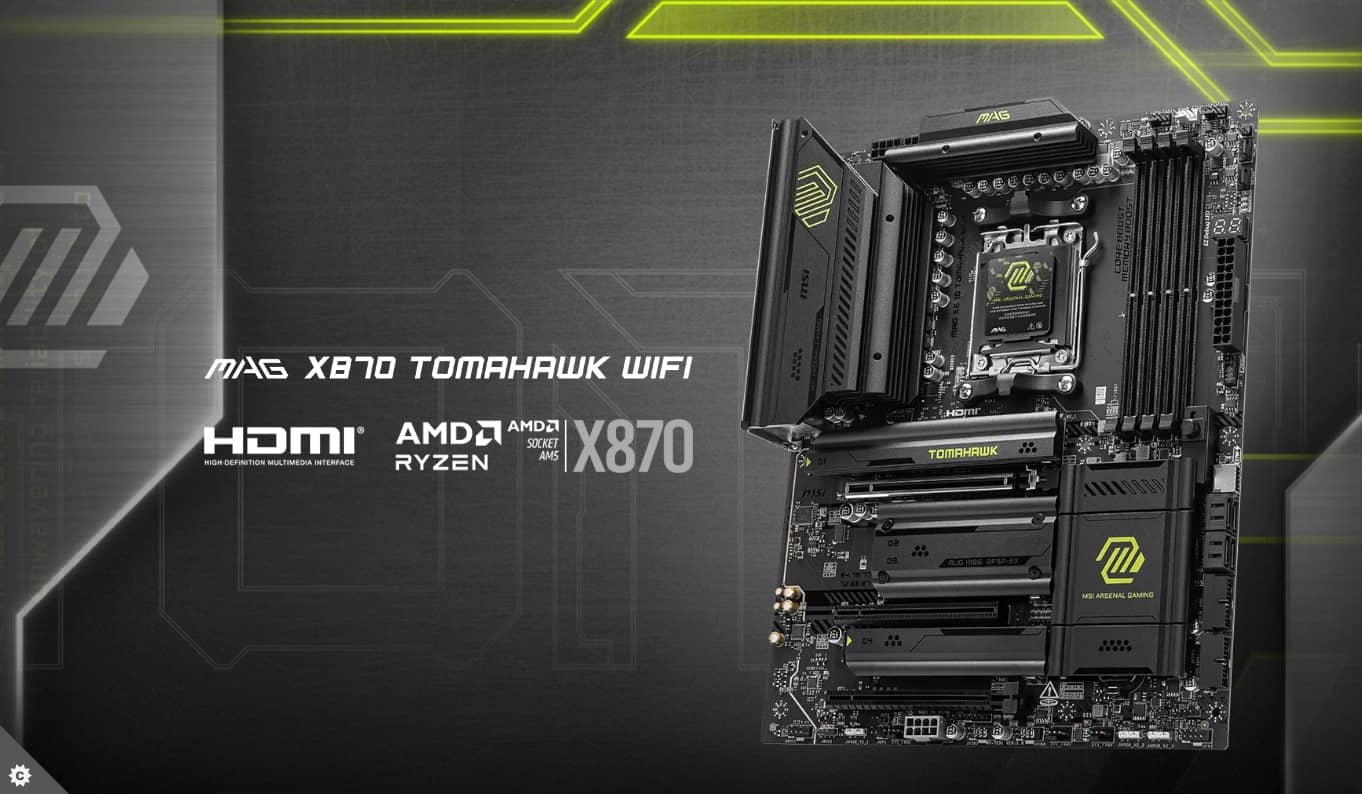 MAG X870 TOMAHAWK WIFI được thiết kế dành cho game thủ với nền tảng ổn định, bền bỉ và thân thiện với việc tự lắp ráp PC. Trang bị giải pháp Wi-Fi 7 thực sự, mạng LAN 5G, USB tốc độ 40Gbps, PCIe 5.0, nguồn PCIe bổ sung và các tính năng EZ DIY độc quyền, bo mạch chủ này sẵn sàng cho trận chiến với các bộ vi xử lý AMD Ryzen™ 9000 series.