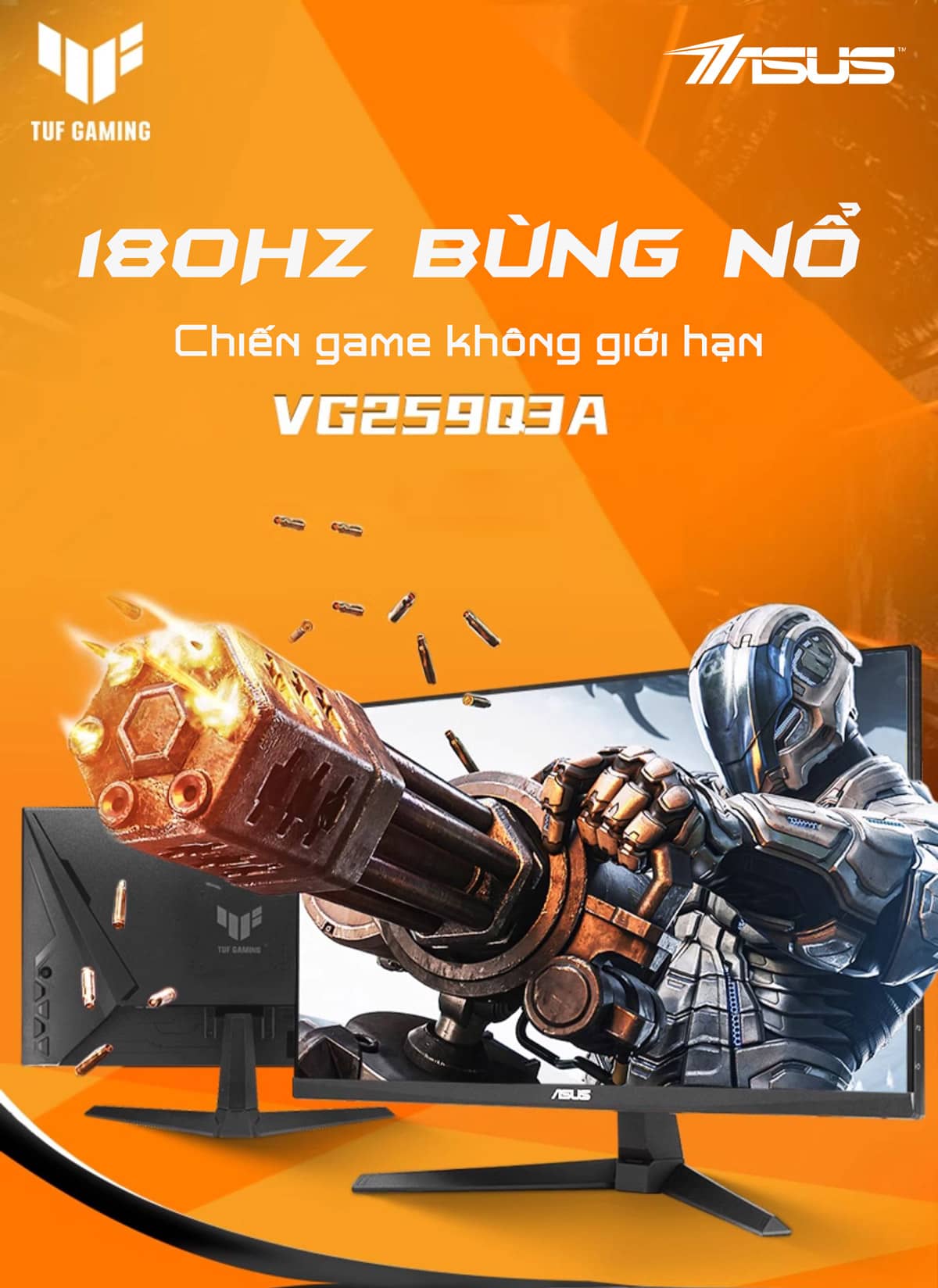 Với tần số quét 180Hz, TUF VG259Q3 mang đến trải nghiệm chơi game cực kỳ mượt mà, hình ảnh chuyển động nhanh được hiển thị rõ nét, giúp bạn phản ứng nhanh hơn đối thủ và có lợi thế trong các trận đấu căng thẳng.