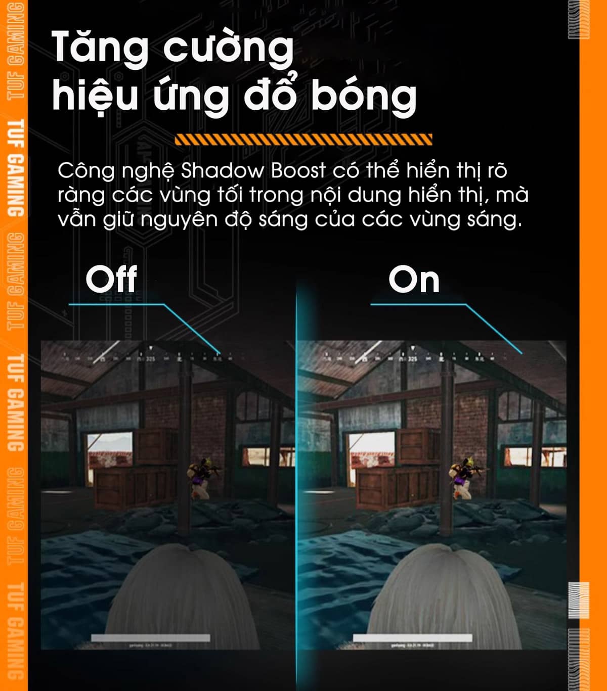 Công nghệ Shadow Boost độc quyền của ASUS giúp làm sáng các vùng tối trong game mà không làm cháy sáng các vùng sáng, giúp bạn dễ dàng nhận biết kẻ địch ẩn nấp trong bóng tối và có những pha xử lý chính xác.