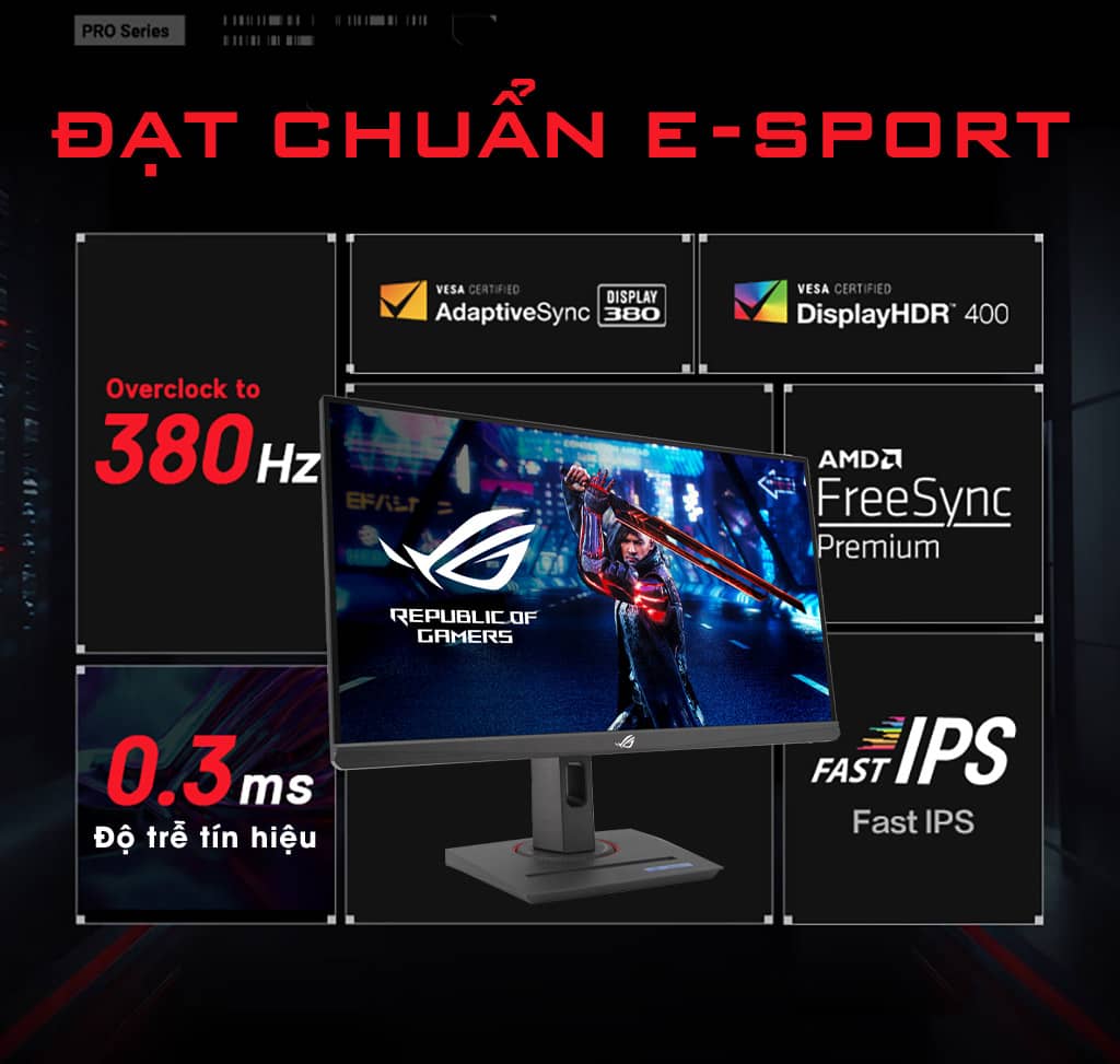 ROG Strix XG259QNS là màn hình chuyên game cao cấp, được thiết kế đặc biệt cho các game thủ chuyên nghiệp và những người đam mê eSports. Với tần số quét lên đến 380Hz và thời gian phản hồi chỉ 1ms, màn hình này mang lại trải nghiệm chơi game mượt mà và không bị giật lag. Đây là lựa chọn hoàn hảo cho những ai muốn nâng cao kỹ năng và đạt được thành tích cao trong các trận đấu