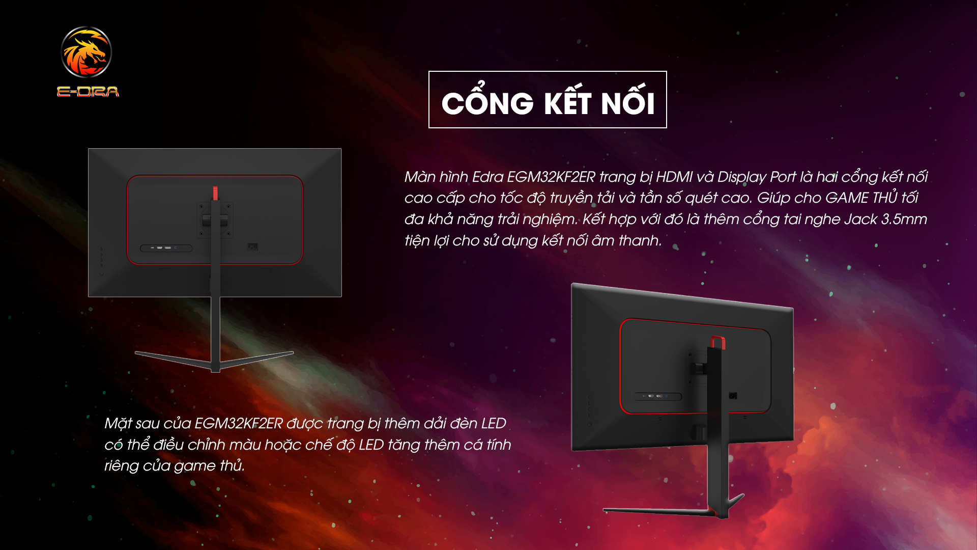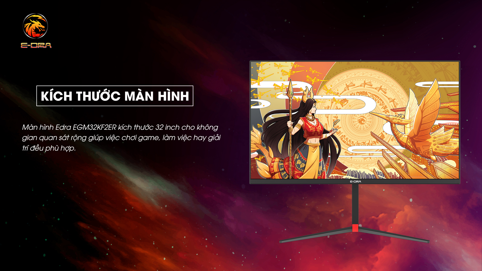 Hình ảnh đầu tiên ngay trước mắt các bạn, chính là chân dung thực tế của chiếc Màn hình máy tính Gaming E-Dra EGM32KF2ER với kích thước tiêu chuẩn 31.5 inch, tấm nền Màn hình IPS, phân giải 2560*1440, tỉ lệ 16:9, tần số 144Hz, phản hồi 1ms (MPRT) cùng với độ sâu màu sắc lên tới 16.8 triệu màu, độ phủ màu sắc lên tới 100% sRGB, 85% NTSC và độ sáng màn hình 350cd/m2 (Typical).