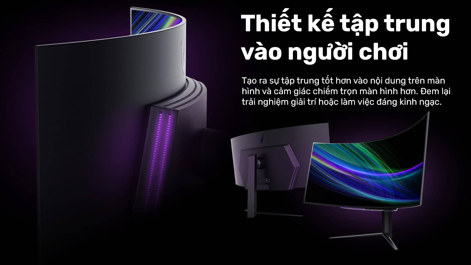 Mang lại sự đồng nhất tuyệt vời với độ sáng và độ lệch màu thấp hơn cũng như cùng một góc nhìn với khoảng cách nhỏ từ chính giữa và cạnh bên ngoài của màn hình bằng cách áp dụng độ cong 800R. Thiết kế viền siêu mỏng của màn hình cũng góp phần tăng tính thẩm mỹ và tạo cảm giác màn hình lớn hơn, giúp người dùng tập trung vào nội dung hơn