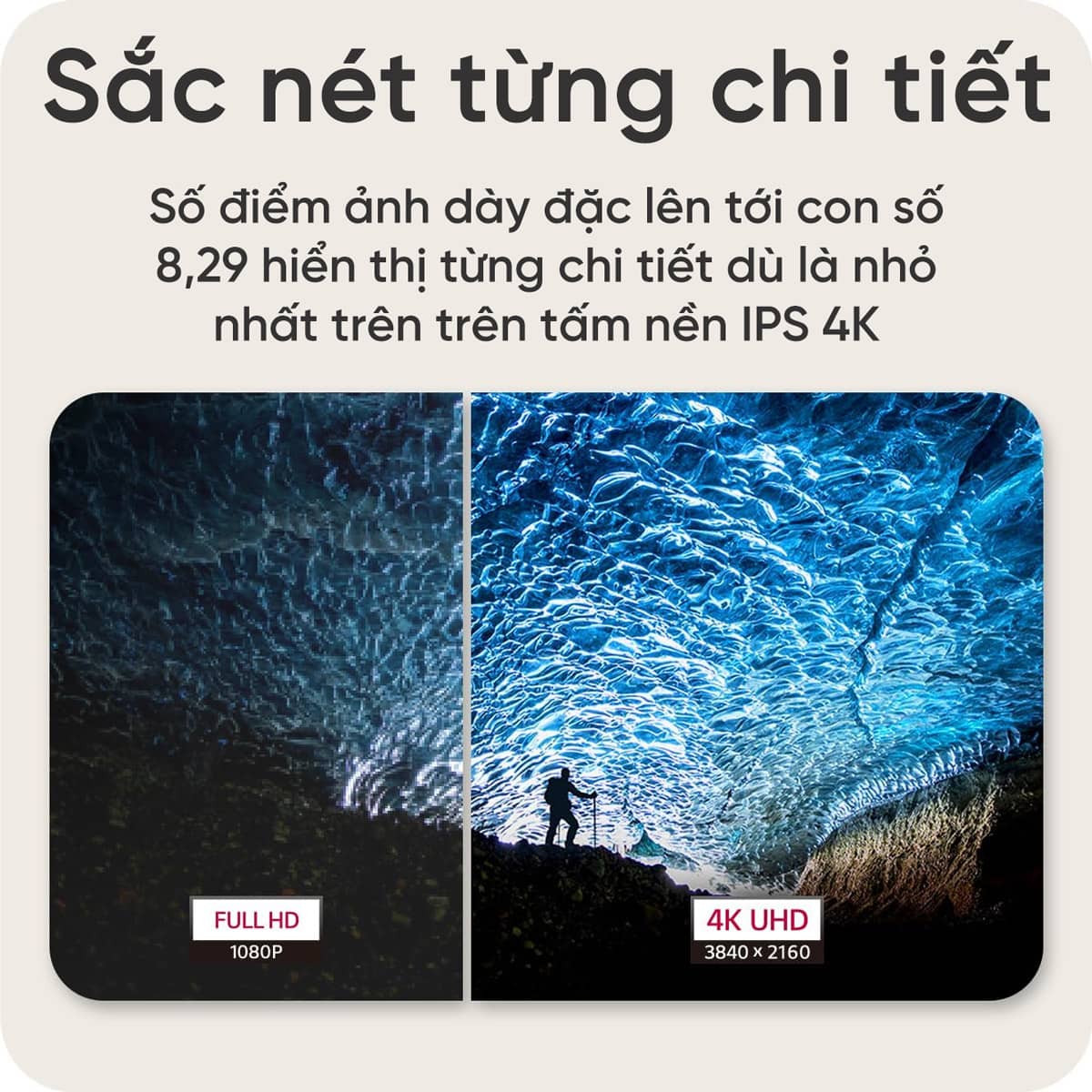 Với độ phân giải 4K (3840 x 2160 pixel), màn hình LG 27US500-W mang đến hình ảnh sắc nét, chi tiết gấp bốn lần so với màn hình Full HD. Số lượng điểm ảnh lớn giúp hiển thị văn bản, hình ảnh và video một cách rõ ràng và trung thực, đáp ứng nhu cầu làm việc đồ họa, thiết kế hoặc xem phim chất lượng cao. Tấm nền IPS mang lại góc nhìn cực rộng 178 độ, giúp nội dung không bị sai lệch về màu sắc và mất chi tiết ở mọi góc độ.