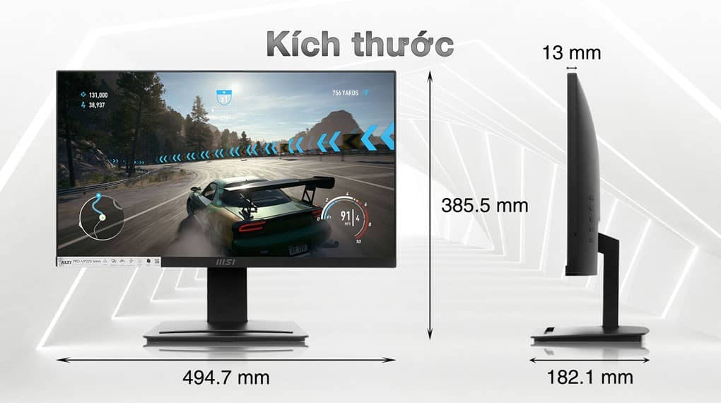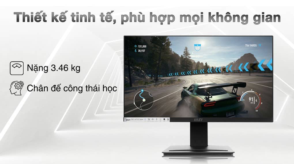 Màn hình MSI PRO có trọng lượng tổng thể 3.46 kg cùng kích thước rộng 49.4 cm, cao 38.5 cm. Dù chân đế được cấu thành từ nhựa nhưng vẫn tỏ rõ sự cứng cáp thiết kế gọn nhẹ, mang đến sự di động cho phép bạn di chuyển đến bất kỳ vị trí nào trên bàn làm việc hay bàn học một cách dễ dàng.