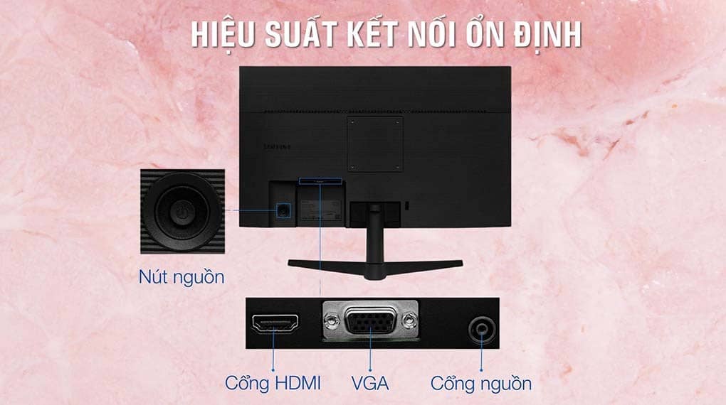 Chân đế chỉ dừng lại ở các chế độ ngả nghiêng cơ bản, vẫn có thể mang tới cảm giác trải nghiệm trọn vẹn. Mặt sau hỗ trợ ngàm treo màn hình tiêu chuẩn VESA 100x100mm, giúp màn hình linh hoạt trong việc tối ưu không gian sử dụng.