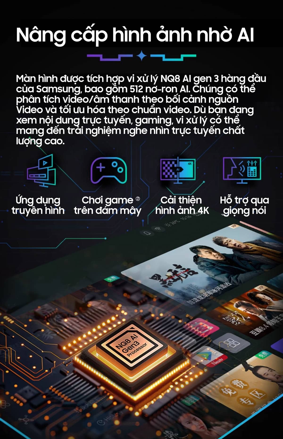 Vi xử lý NQ8 AI trên màn hình Samsung Odyssey OLED G8 G80SD đóng vai trò quan trọng trong việc nâng cao trải nghiệm sử dụng và chất lượng hình ảnh. Nhờ vào công nghệ AI tiên tiến, vi xử lý này có khả năng tối ưu hóa hình ảnh theo thời gian thực, đảm bảo màu sắc và độ tương phản luôn đạt mức tốt nhất. Nó cũng giúp giảm thiểu hiện tượng giật lag và tăng cường độ mượt mà của hình ảnh, đặc biệt là trong các cảnh chuyển động nhanh. Ngoài ra, vi xử lý NQ8 AI còn hỗ trợ các tính năng thông minh như tự động điều chỉnh độ sáng và chế độ hiển thị phù hợp với nội dung, mang lại trải nghiệm xem tuyệt vời và tiện lợi cho người dùng.