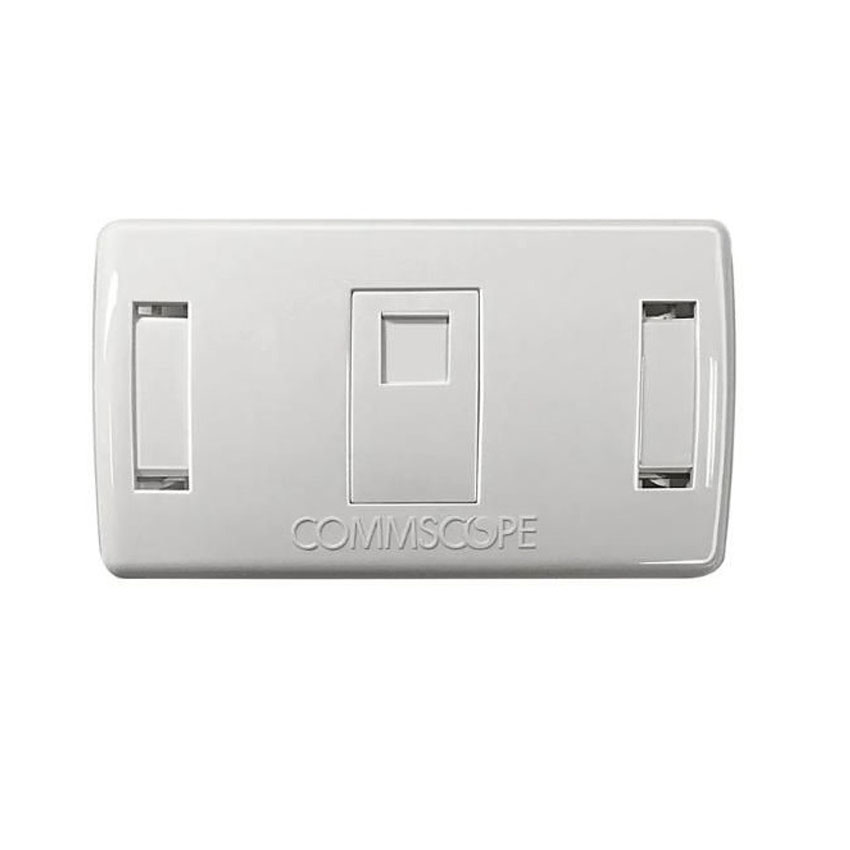 Mặt đơn 1 cổng Commscope NetConnect Faceplate chuẩn US, có nắp che shutter, thiết kế bền đẹp, phù hợp hệ thống mạng âm tường.