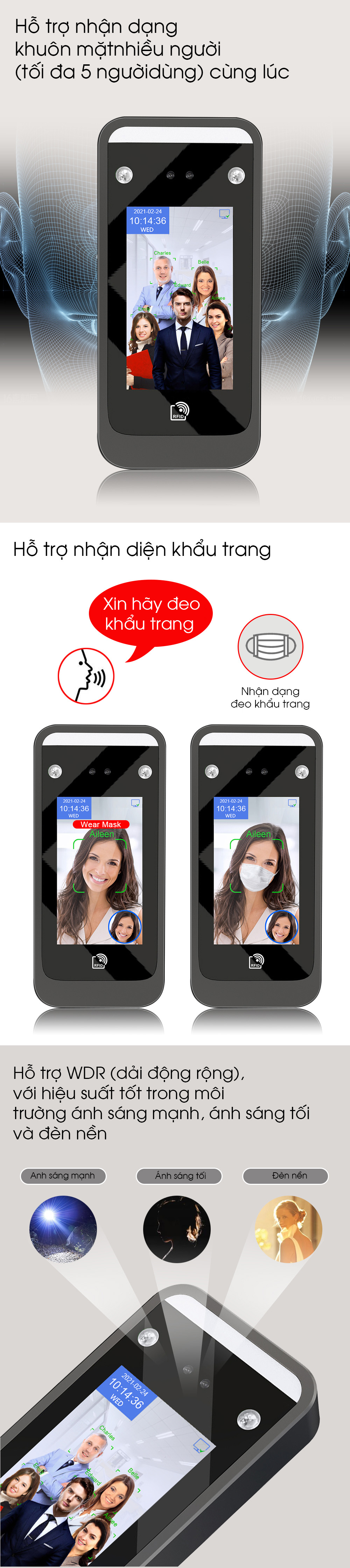 Loại máy | khuôn mặt, Thẻ cảm ứng, Password |