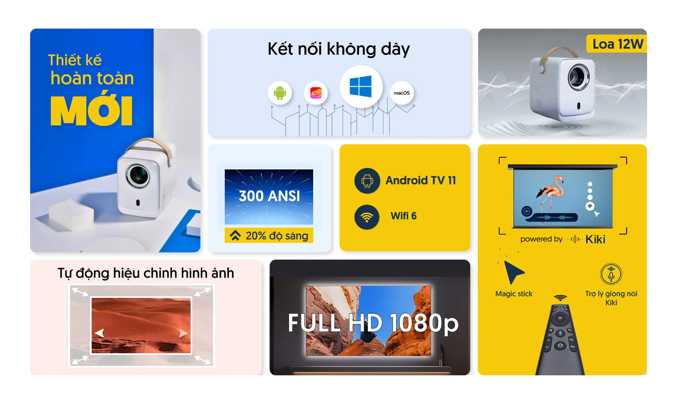 Công nghệ mới | Độ phân giải Full HD, Độ sáng cao và tự động lấy nét, tự động hiệu chỉnh hình ảnh 4D |
