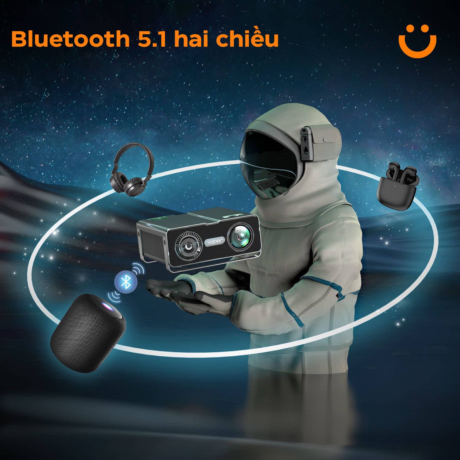 Yaber V10 sử dụng công nghệ Bluetooth hai chiều tiên tiến nhất. Ngoài khả năng kết nối để phát hình ảnh và xuất âm thanh ra loa, Yaber V10 còn có thể kết nối với điện thoại di động và máy tính để trở thành một chiếc loa Bluetooth di động.