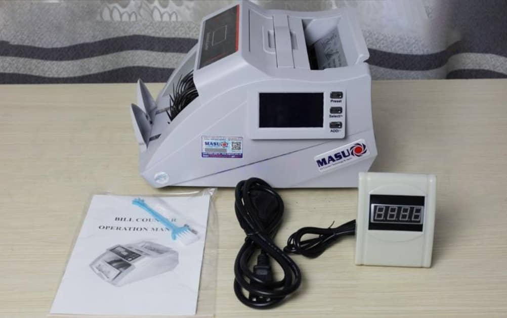 Trên máy đếm tiền Masu 2019 có đầy đủ các tem logo sản phẩm chính hãng, tem bảo hành của hãng, tem chống hàng giả...giúp người dùng dễ dàng nhận biết sản phẩm chính hãng và yên tâm hơn khi sử dụng.