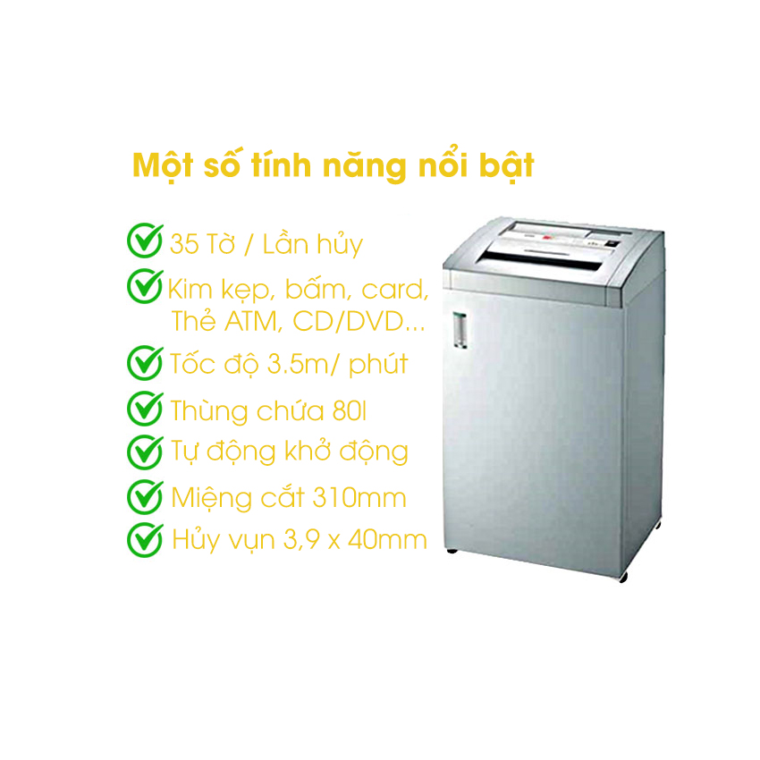 - Khả năng hủy: Hủy Kim kẹp, kim bấm, ghim bấm, Card, thẻ, thiệp, đĩa CD/DVD