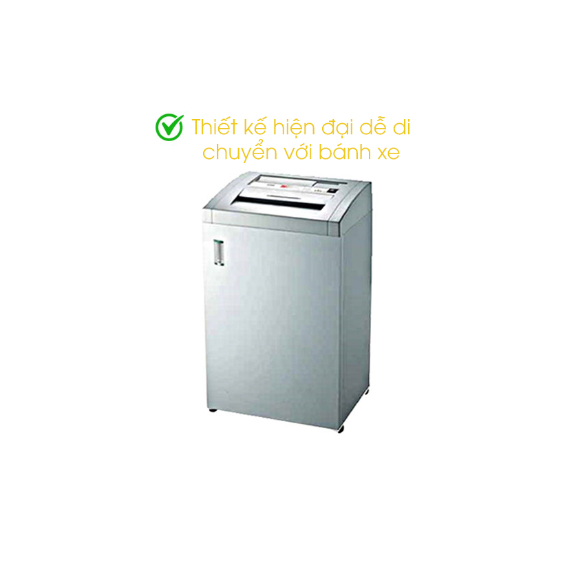 Một điểm cộng nữa của Máy hủy tài liệu Apollo A50 là máy có thiết kế hiện đại và sang trọng. Máy có màu đen chủ đạo, phù hợp với mọi không gian làm việc. Máy có kích thước 500x 420x 900mm, không quá to và cồng kềnh, dễ dàng di chuyển và bố trí. Máy có bánh xe xoay 360 độ, giúp bạn di chuyển máy một cách linh hoạt và thuận tiện. Máy cũng có nắp đậy bảo vệ miệng cắt, giúp bạn tránh được nguy cơ bị thương khi sử dụng máy.