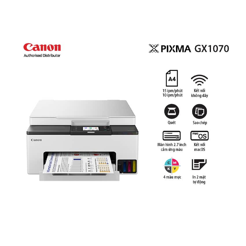 Chất lượng in ấn chuyên nghiệp: Máy In Canon GX1070 sử dụng công nghệ in phun mực màu tiên tiến, mang đến chất lượng in đáng kinh ngạc với độ phân giải cao. Bạn sẽ nhận được các bản in sắc nét, rõ ràng và chân thực, phù hợp cho cả văn bản và hình ảnh.