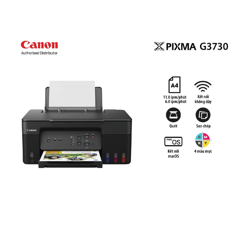 Pixma G3730 có tích hợp Wi-Fi, cho phép bạn in ấn từ các thiết bị di động hoặc máy tính một cách thuận tiện.