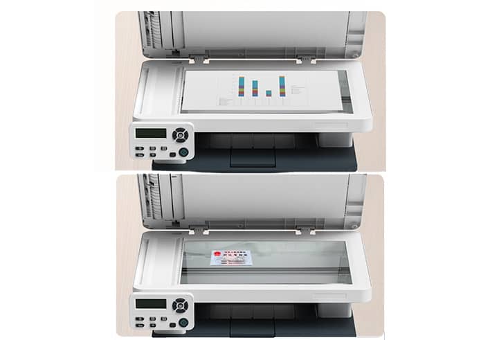 Màn hình LCD có thể nghiêng nằm ở bên trái của máy quét thẳng, được gắn trên khay đầu ra của máy in. Màn hình LCD hai dòng và các nút điều khiển còn cho phép bạn di chuyển qua các menu và đưa các lệnh sao chép và quét. Ngoài ra, thiết bị còn được tích hợp giao thức in qua USB 2.0 nhanh chóng và tiện lợi mà không cần phải cài đặt qua mạng nội bộ trên máy tính. Nó sẽ giúp bạn làm tăng hiệu quả công việc hơn.